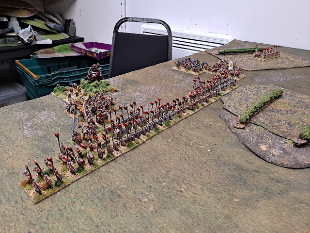 I pushed infantry into the vineyard to my front and advanced other troops a bit to form a reception committee for Lee's left wing. This did allow me to get a unit into shooting range of one of his Unprotected cavalry units which was useful - Lee had miscalculated his advance slightly. This would allow me a shot with three Green dice next turn.